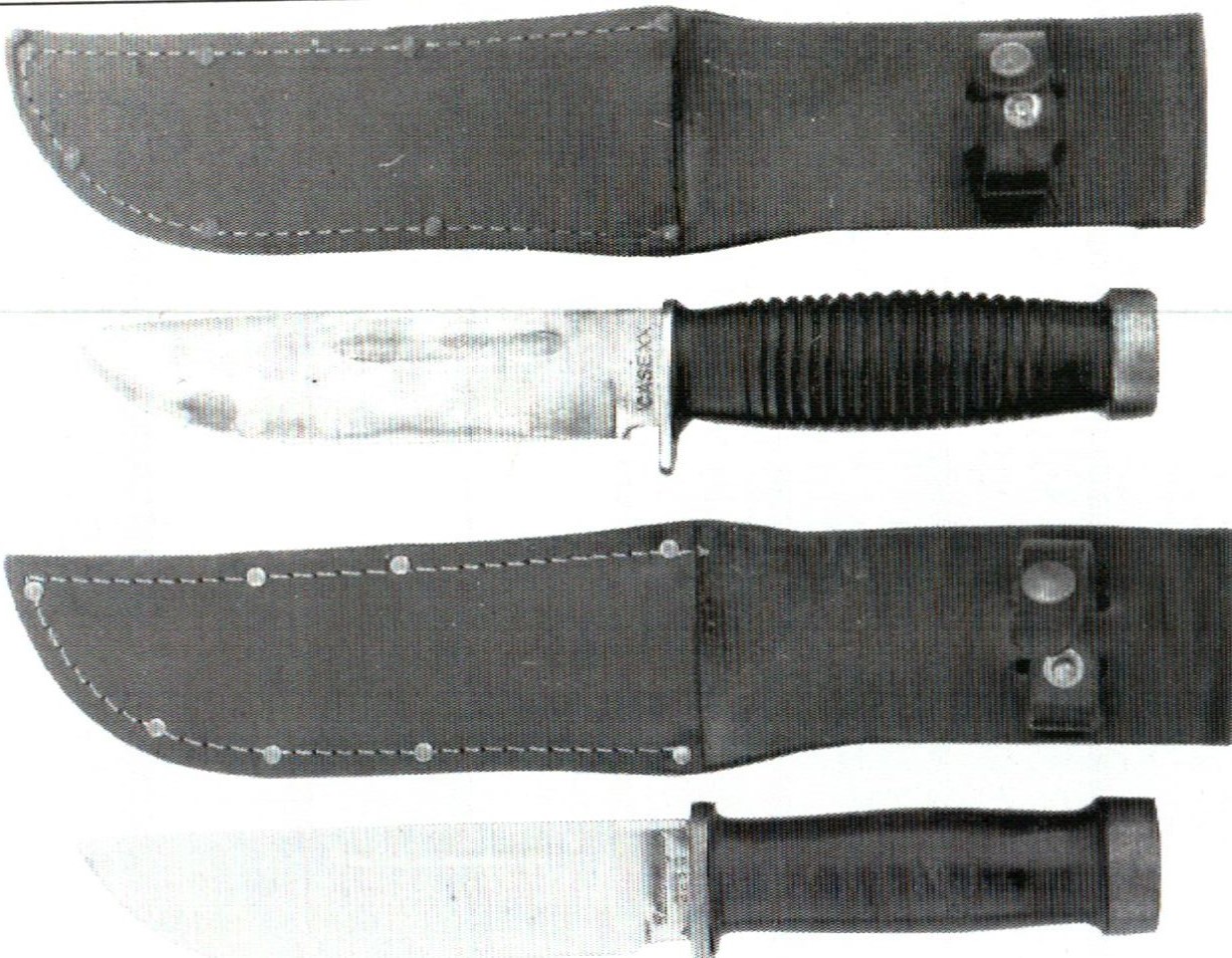 Le 337-6 Q ,il est de type U.S.N MK1 lame à gouttières, polie"blanc brillant", pommeau-disque en acier dont le dessus est orné d'un dessin en "têtes de clous", poignée en rondelles de cuir à rainures et garde plate à une branche. |