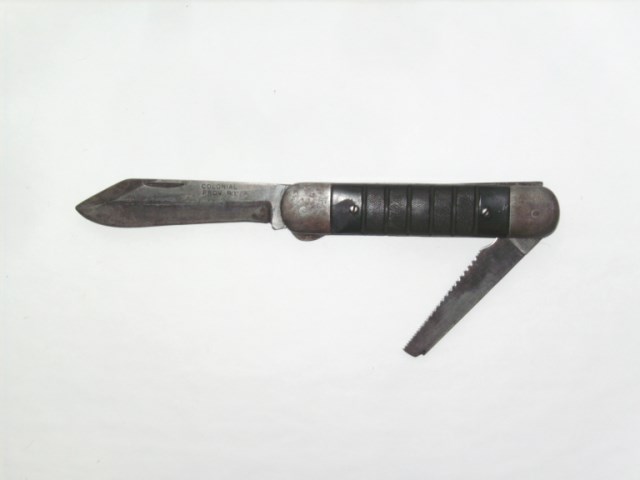 Couteau "Colonial prov USA WWII ." est un petit couteau d'usage général, à la manière des canifs, avec une petite fonction poignard, il était utilisé surtout en campagne extérieure, il était plus discret à porter qu'un gros poignard.