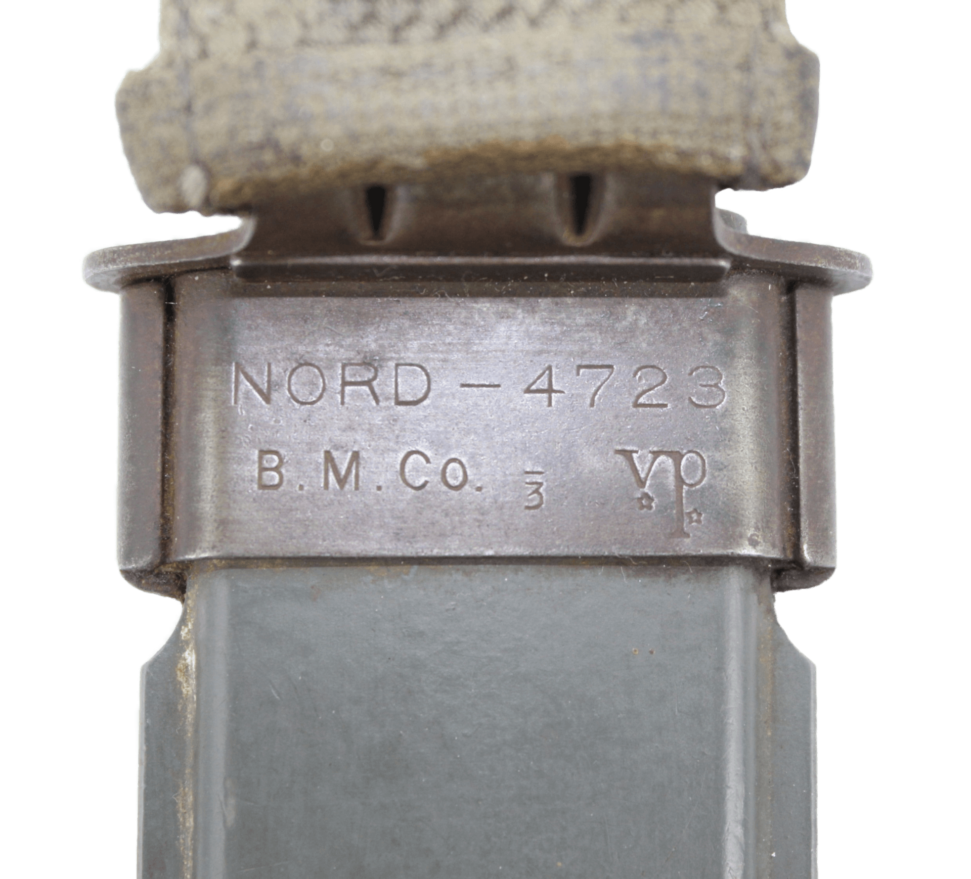 | La dénomination USM8A1 a été adoptée en Avril 1944, mais ce n'est que quelques temps plus tard que le marquagea été modifié.De fait, beaucoup d' USM8A1 étaient encore marqués USM8 sur la chape. Tousles fourreaux USM8 et USM8A1 de la seconde guerre mondiale ont été fabriqués sous contrat par Beckwith Manufacturing Compagny (BMCO).Depuis 1942,Beckwith avait une filialeVictory Plastic (VPCO). Cest Victory Plastic qui fabriquera la gaine du Fourreau , la partie thermoplastic. | |||||||||||||||||||||||
