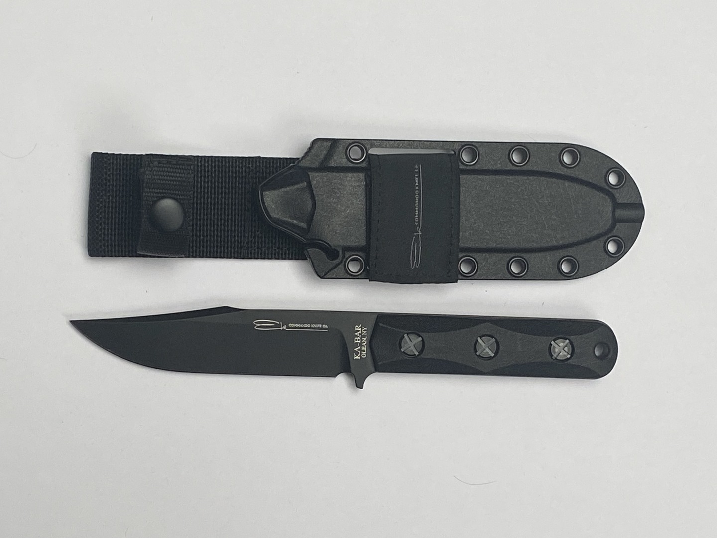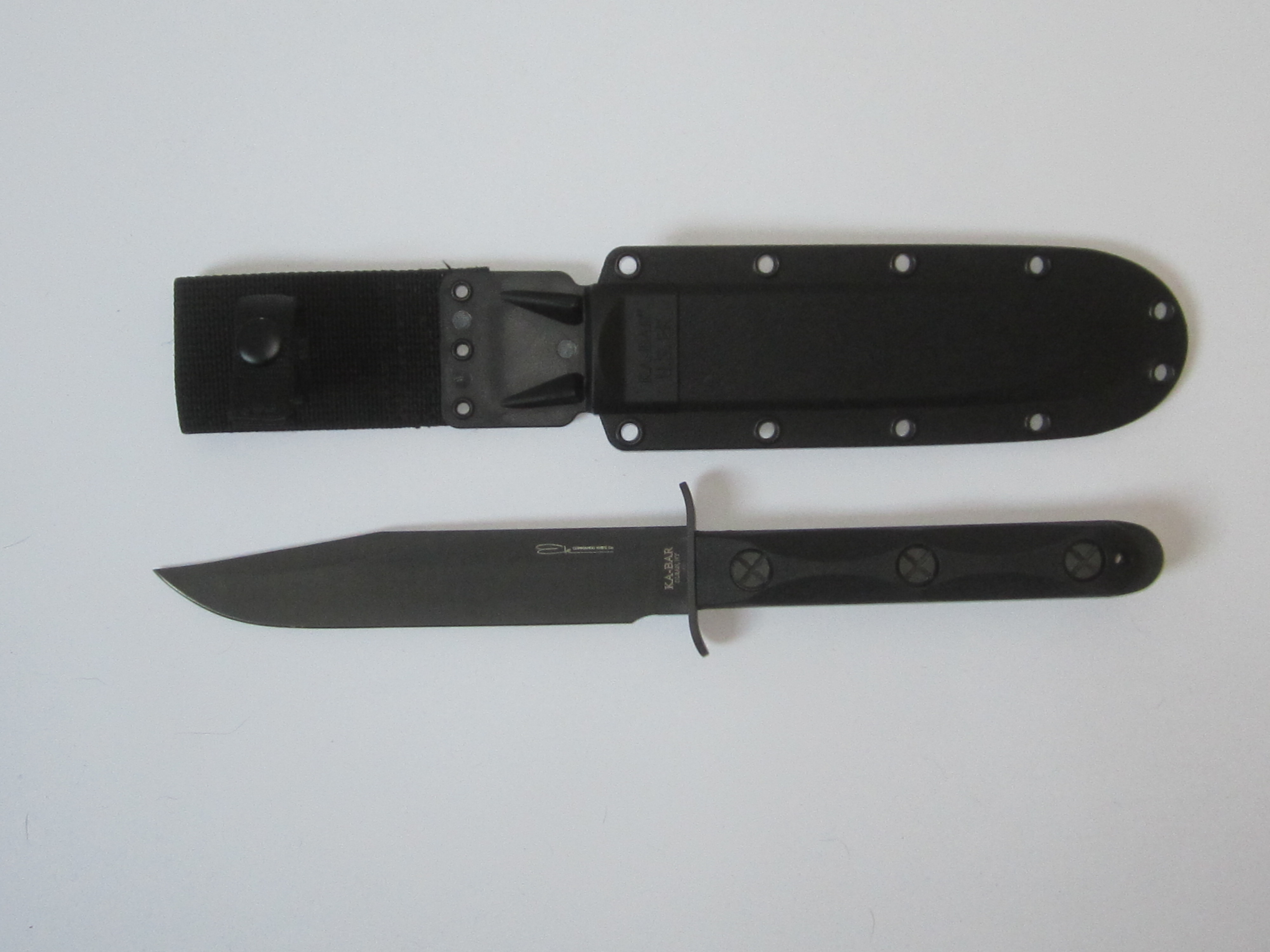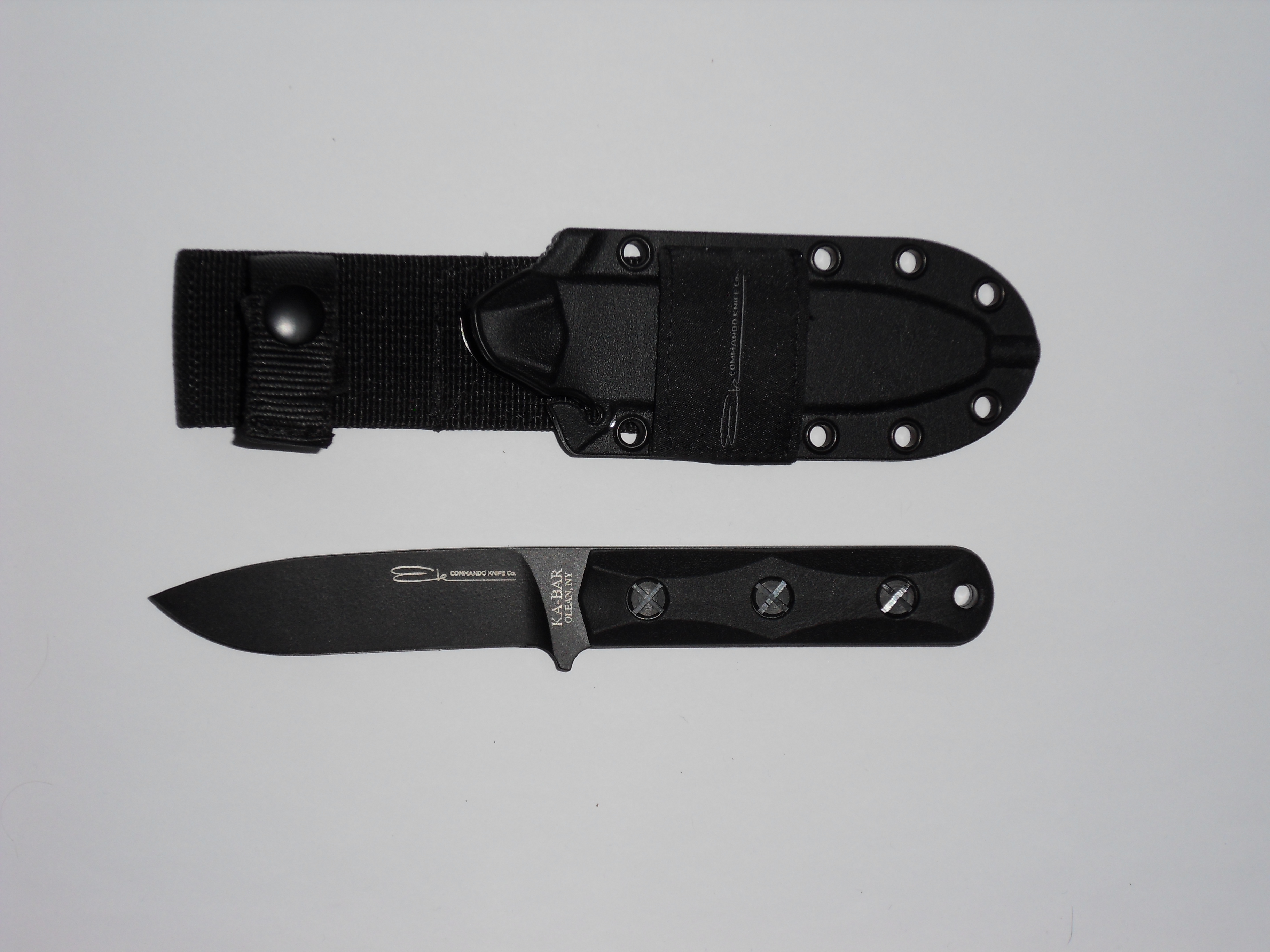 EK 44 Commando Knife Model 4 Longueur totale 31.75 cm Lame en acier 1095 parkérisé à double tranchants de 16 cm, épaisseur 4mm Garde en acier 1095 Signature de "John Ek" et le logo sur la lame Type plate semelle , HRC 58, Manche en fibre de de nylon Etui en Celcon en nylon noir. EK43 Commando Model 3 Longueur totale 31.50 cm Lame en acier 1095 de finition parkérisée , HRC 56-58 Tranchant de 15 cm, contre tranchant de 9.50 cm, épaisseur 3.6 mm Type plate semelle Signature de "John Ek" sur la lame et le logo .Manche en fibre de nylon Garde acier 1095 Etui en Celcon noir. EK45 Commando Model 5 Longueur totale 31.75 cm Lame en acier 1095 parkérisé à double tranchants de 16 cm, épaisseur 4mm Garde en acier 1095 Signature de "John Ek" s et logo sur la lame Type plate semelle , HRC 58, Manche en fibre de de nylon Etui en Celcon en nylon Made in the USA