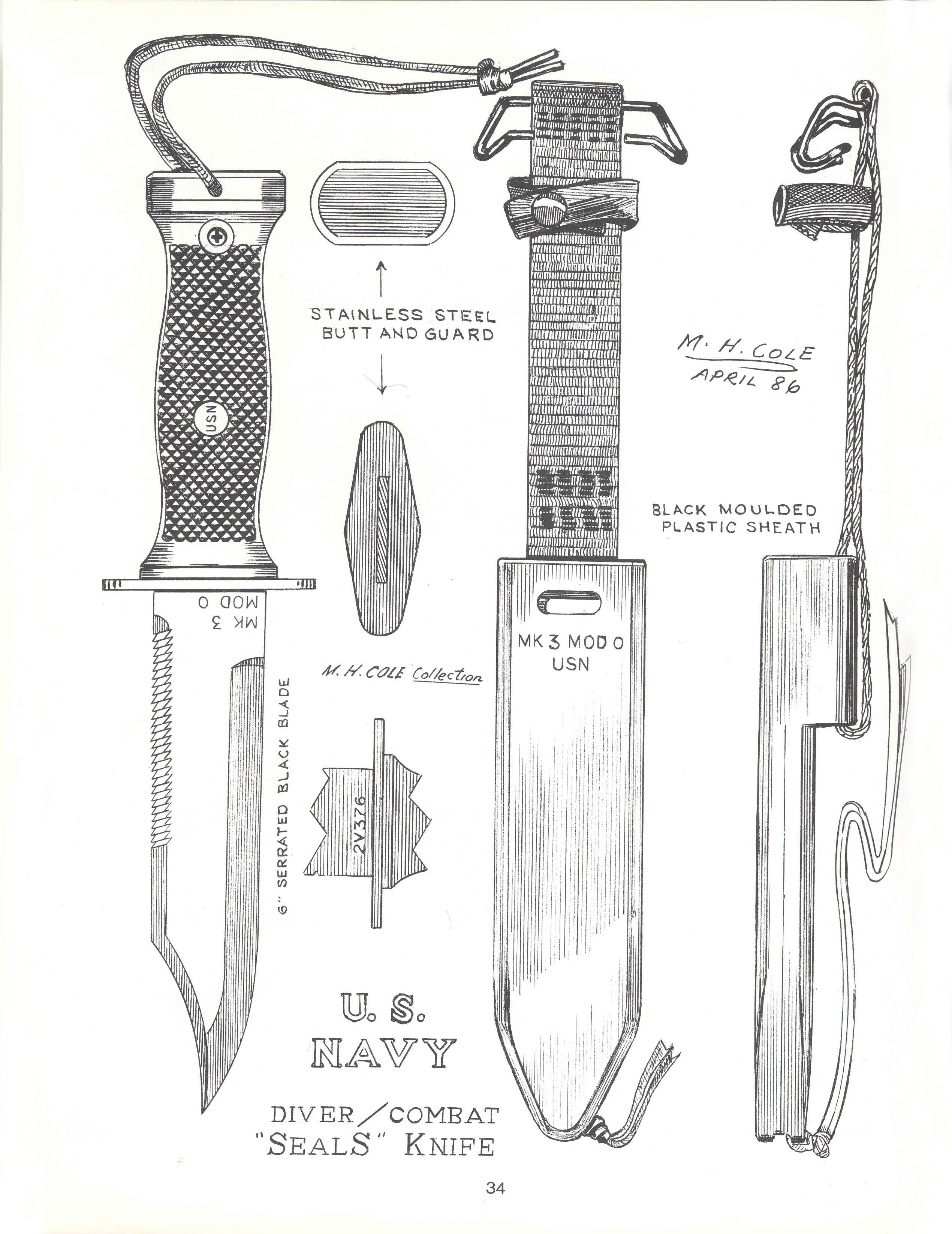 | Le Mark 3 est doté d'une lame en acier inoxydable de 6 1 / 2 "440. Il a un dos en dents de scie et une finition en oxyde noir , avec une poignée et une gaine en plastique à fort impact. en raison de dommages à la pointe de la lame lors de la levée. Ils ont depuis renforcé la pointe en éliminant la courbe inverse rendant le point plus solide. Les gens ont trouvé de nombreuses utilisations pour ce couteau, y compris en utilisant le talon comme un marteau et la lame comme un levier ce qui peut causer des dommages personnels. La lame est censée tenir un grand bord et être très durable. Outre les États-Unis, le couteau Mark 3 est délivré aux officiers de l' Unité des fonctions spéciales et de l' Unité de lutte contre le terrorisme de la police de Hong Kong . | ||||