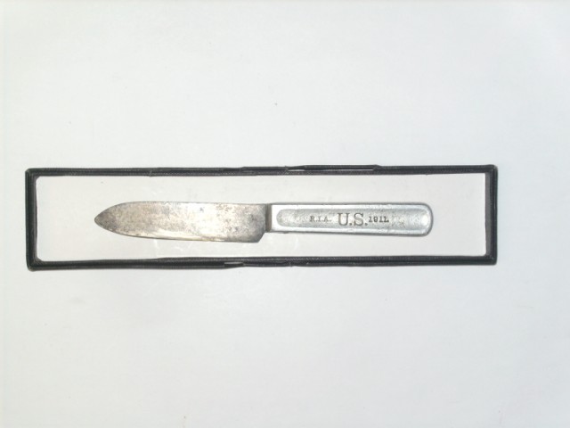 Le couteau du MESS KIT WWI (Rock Island Arsenal) Le couteau se range dans la pochette ŕ gamelle ( meat can carrier ). |