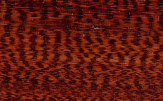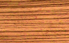 Connu aussi sous le nom de Zingana, ce bois mi-dur et mi-lourd a un grain assez gros. De couleur brun jaune clair marqué de veines brun sombre, fines et nombreuses, très rectilignes sur quartier. Importé depuis le début du XX° siècle, il fut utilisé durant les années 1930, puis vers 1950-1960. Une célèbre marque d'automobiles l'utilisa teinté en violet, puis naturel, pour décorer ses tableaux de bord. Toujours utilisé en décoration. | |||