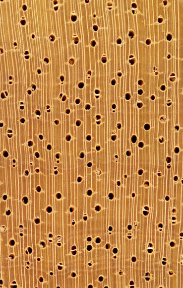 Sa couleur naturelle est crème rosé, mais il est souvent étuvé, ce qui lui donne une couleur plus uniforme, mais plus foncée. On le reconnaît facilement grâce à sa maillure brune qui se détache sur son fond clair. Excellent bois de menuiserie, surtout en sièges. | |||