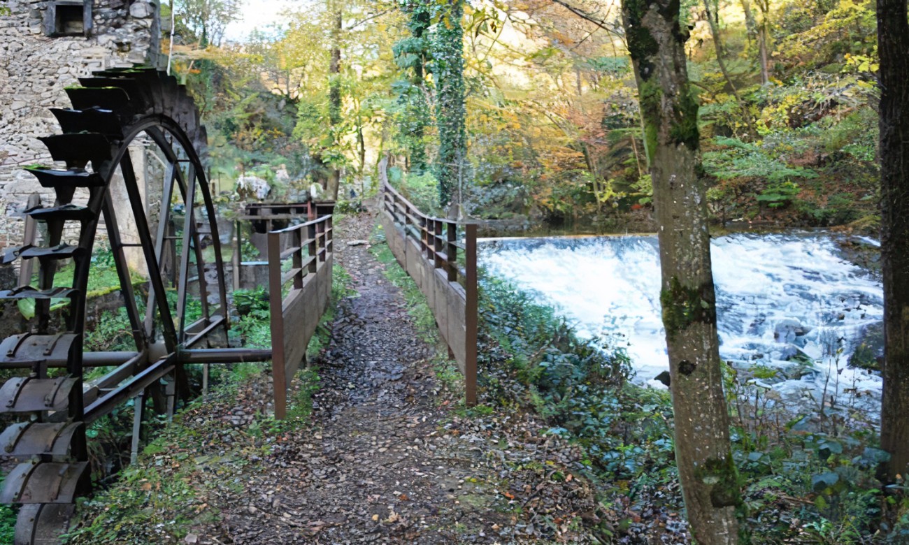 | La vallée des Rouets ce sont 2 kilomètres de sentiers balisés le long de la Durolle. Cette invitation à la randonnée sera pour vous une découverte émotionnelle de la coutellerie. Vous pourrez également assister à la visite du dernier moulin à émoudre les couteaux. Ce parcours pédestre représente un lieu de promenade privilégié le long de la Durolle où travaillèrent des générations d'émouleurs et d'autres représentants de la corporation coutelière. Cette vallée de la Durolle où de nombreuses chutes d'eau ont permis l'installation des couteliers, est un haut lieu de la muséologie industrielle... Situé en pleine nature, ce parcours de quelques trois kilomètres le long de la rivière Durolle, permet aux visiteurs de "s'immerger" physiquement dans la coutellerie, de partir sur les traces des émouleurs, ces ouvriers de la coutellerie travaillant allongés sur une planche au dessus de leur meule. Leurs ateliers ou rouets (moulins à émoudre les couteaux) ont été progressivement désertés à partir des années 1930. Aujourd'hui, le site offre l'image d'une nature sauvage marquée par la patience et la ténacité de générations de couteliers. Dans la Vallée, tout parle de cette corporation d'hommes du métal : chemins, ponts, barrages témoignent de la solidarité obligée entre tous pour survivre. Au détour d'un chemin, un jardin autour d'un rouet, un damier taillé dans une meule illustrent les loisirs de ces ouvriers soumis aux caprices de l'eau. En entrant dans le dernier rouet en activité "Chez Lyonnet", le visiteur peut voir tourner la roue, entendre claquer les courroies sur les poulies, monter à la "chambre". Un parcours a été aménagé pour la découverte des rouets par le visiteur. Il démarre aux cabanes de Château-Gaillard au niveau du bâtiment d’accueil contemporain qui surplombe les gorges. Les sentiers des émouleurs ont été réhabilités et le rouet Lyonnet a été aménagé en musée. Une mise en scène légère accompagne le promeneur le long de la Durolle de rouet en rouet. Quelques belvédères ont été construits pour fixer le regard plus précisément. Des garde-corps en métal oxydé ont été installés. Des pancartes indiquent le nom du propriétaire du rouet devant lequel on se trouve. Le projet d’aménagement utilise une signalétique plus émotive que didactique pour ne pas dédoubler le rôle du musée. Les noms des émouleurs au niveau de chaque ruine de moulin sont accompagnés du terme "chez" qui engage à une projection affective sur les lieux. | ||||