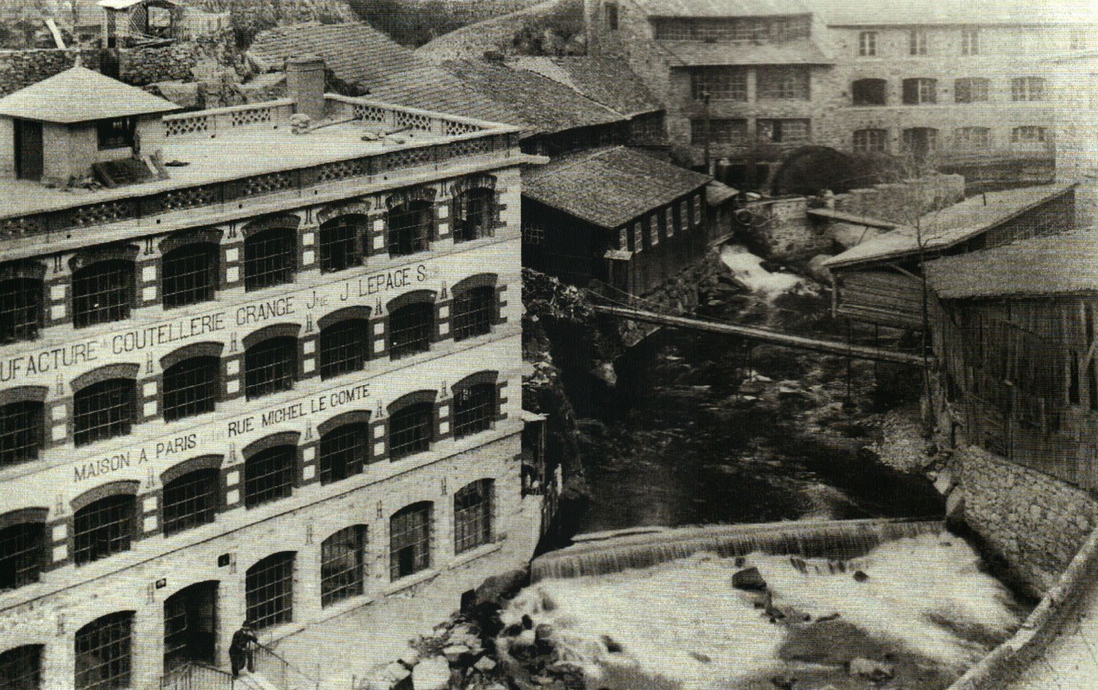 Usine des Charbonniers .L'usine fonctionne jusqu'en 1911, puis est reprise dans les années 1920 par Paul Rie, négociant et fournisseur de corne à destination de la coutellerie. | ||